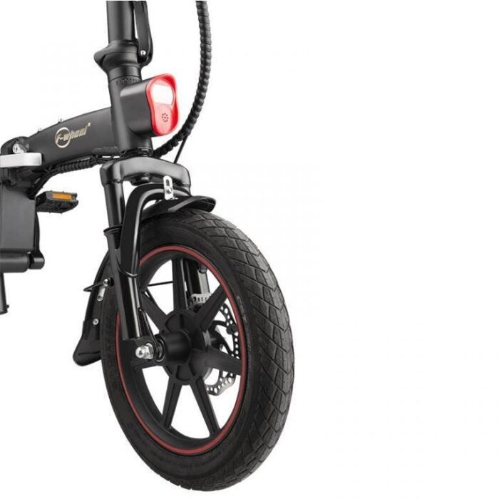 Equipped with a 7.5Ah battery, the DYU A5 Upgraded offers an electric range of 40±3km on a single charge, perfect for medium-distance journeys. The LED front light ensures safe nighttime rides, while the 14-inch inflatable rubber tires of ebike handle different ground conditions with ease, giving you a comfortable ride on urban roads, bike paths, or uneven surfaces.