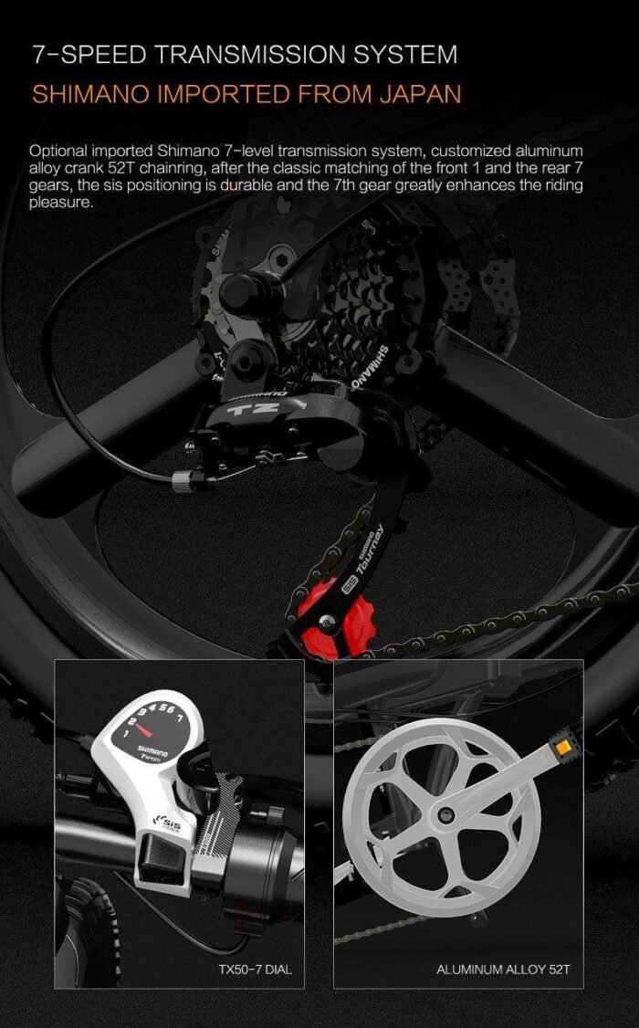 48V12.8Ah power supply 18650 lithium battery pack, built-in frame design IP54 waterproof level, double protection, strong output, always stable. Pure electric can reach 45KM, assisted riding can reach 110KM, providing sufficient power output for riding and free riding.